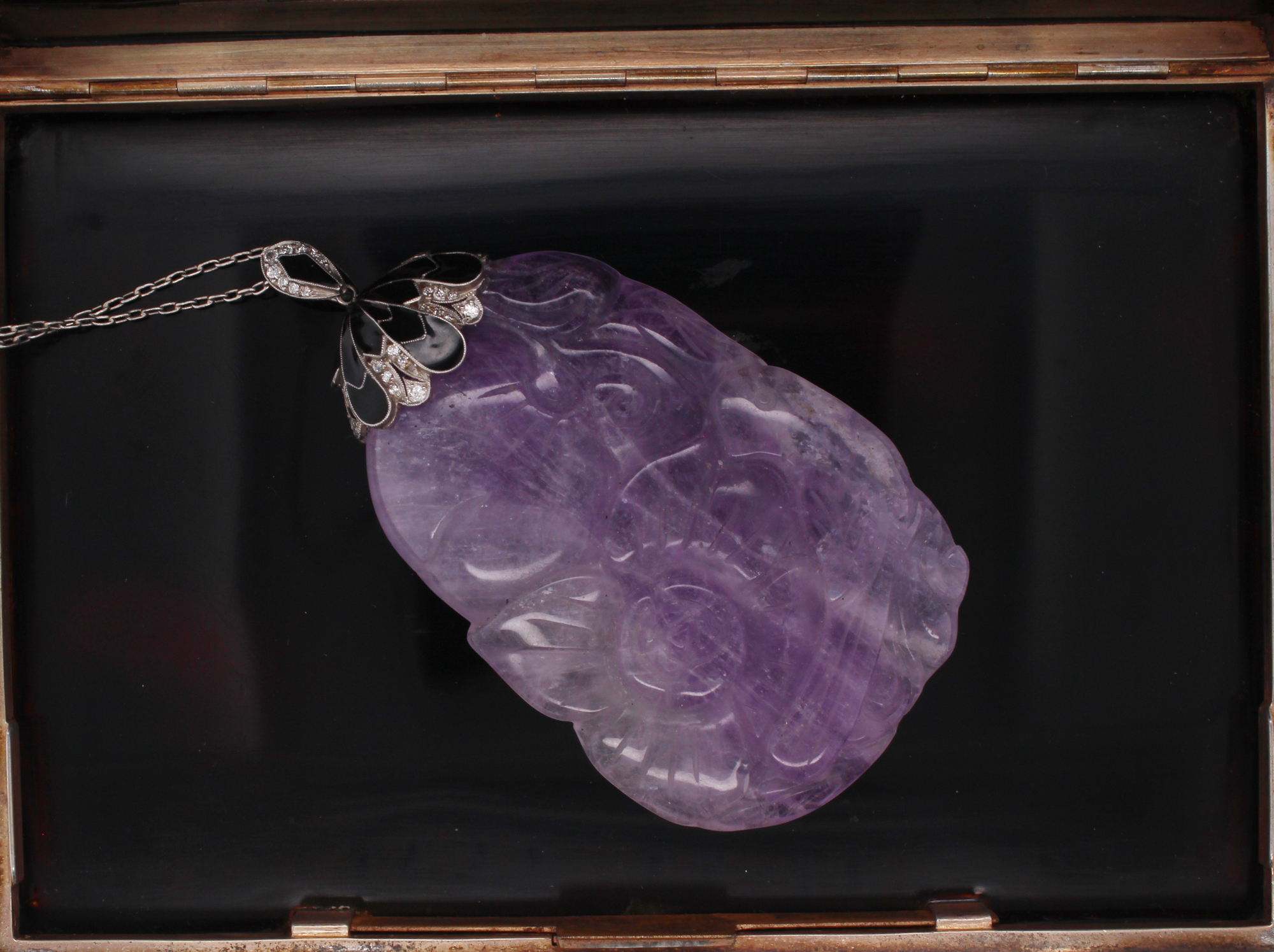 Pendant: 2 3/4" Length 1 1/2" Widest Width Chain: 17" Length