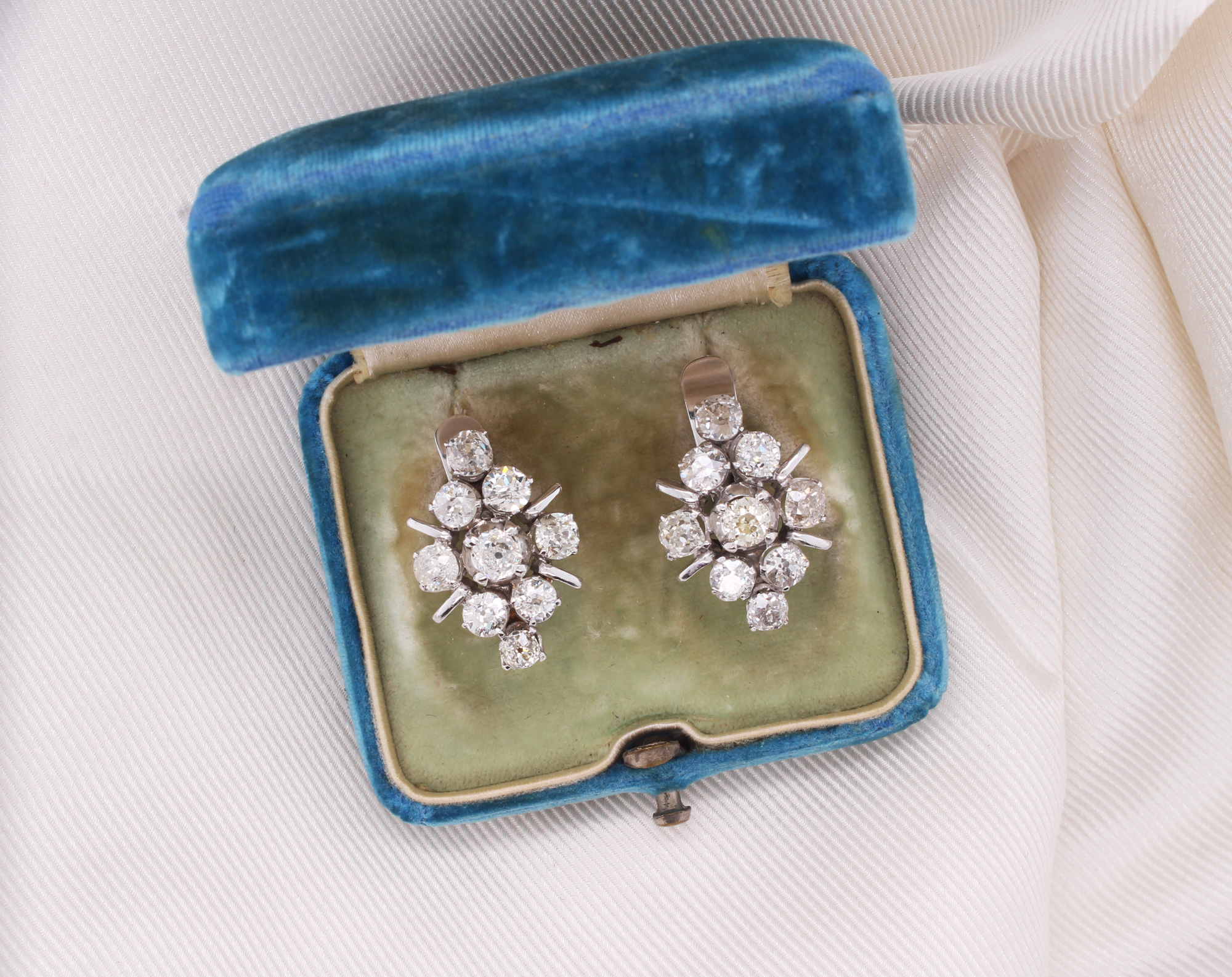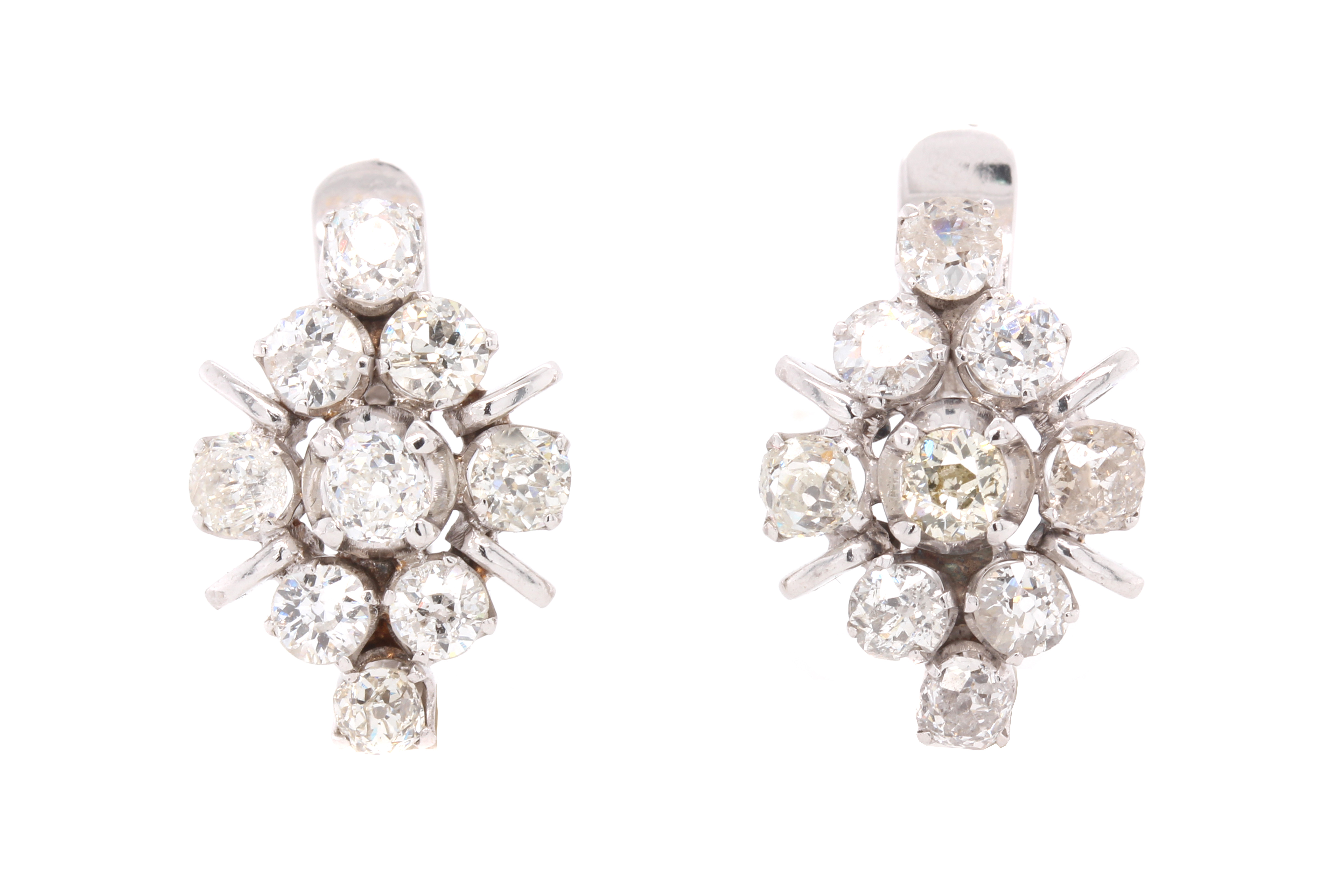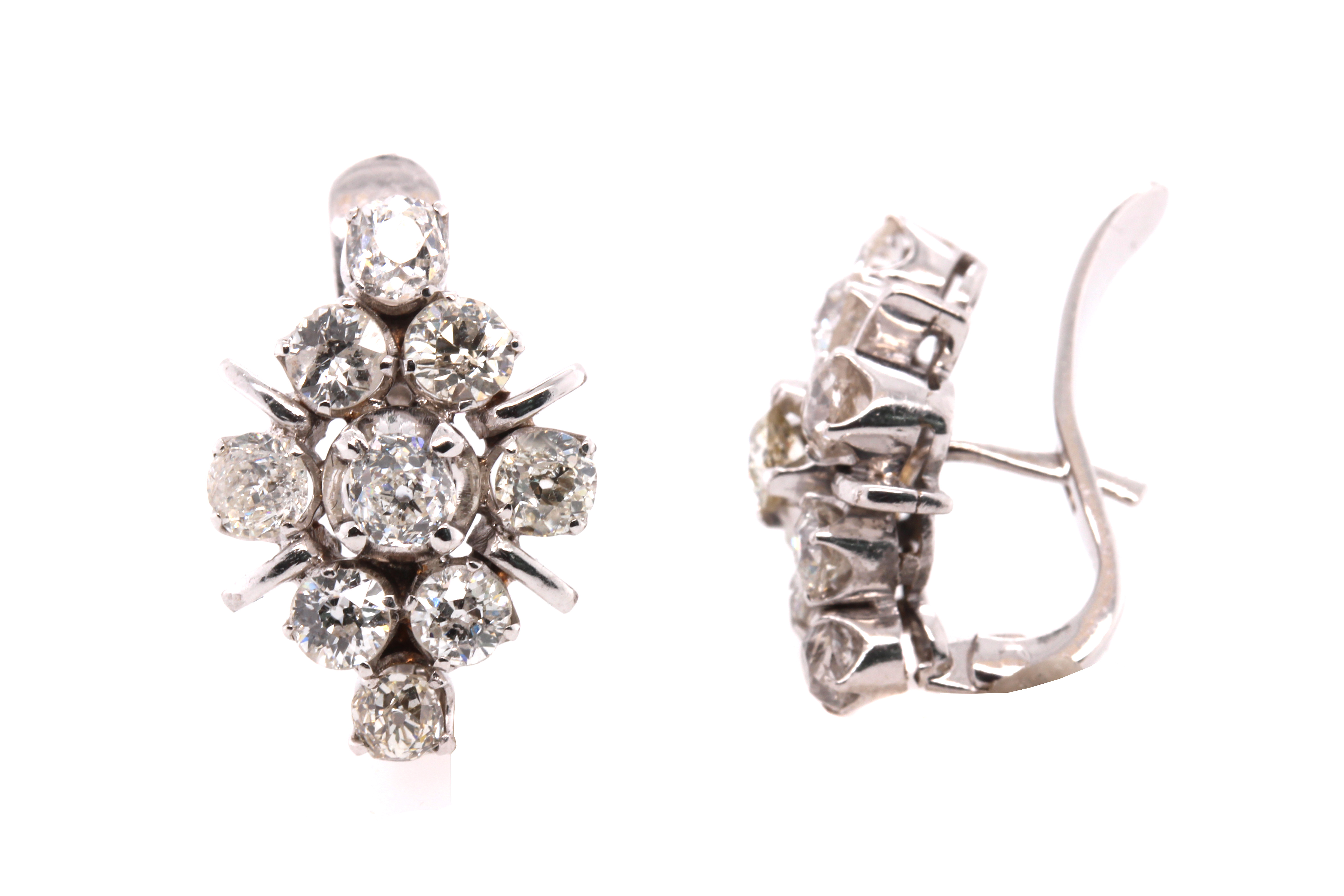 Vintage Old Mine Cut Diamond Cluster Earrings